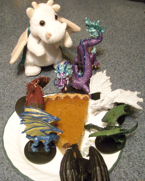 Mm, pie! Although there isn't quite enough room for seven dragons around one slice of pie. Ruth is trying to work out how to wedge his way in without hurting anyone. We forgot to bring whipped cream, though.